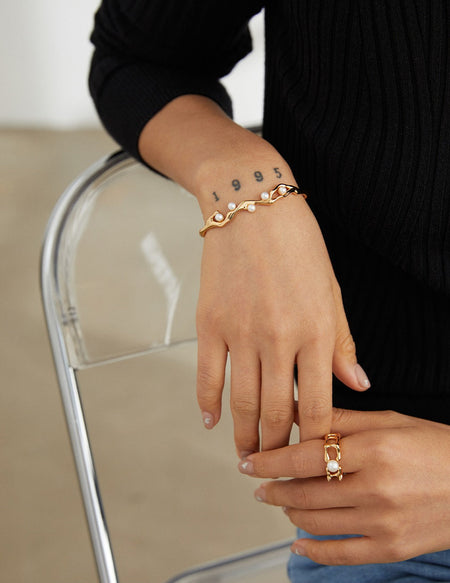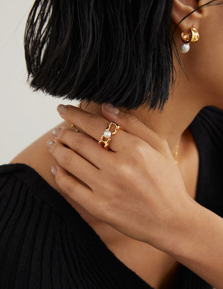 Sterling Silver Natural Pearl Ring | Fluid Geometry | Modern Aesthetic
