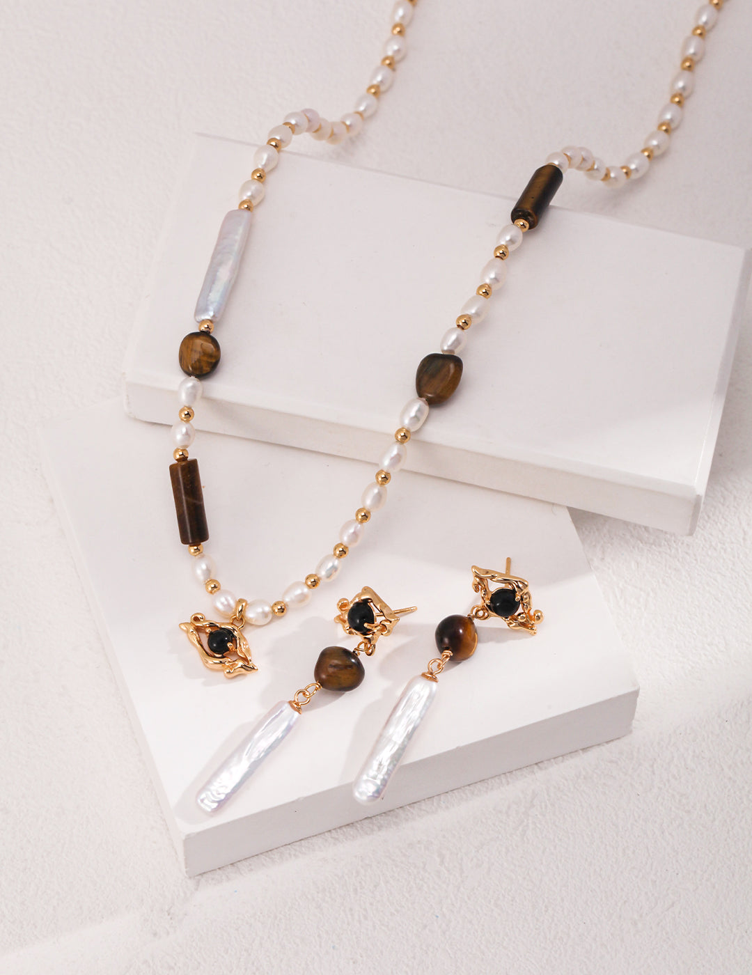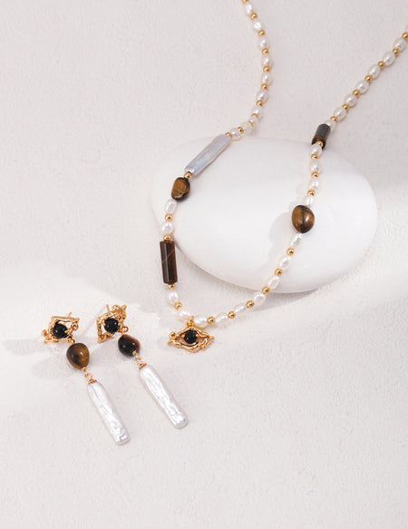 Material: S925 Sterling Silver / Tiger’s Eye / Black Onyx / Freshwater Pearls