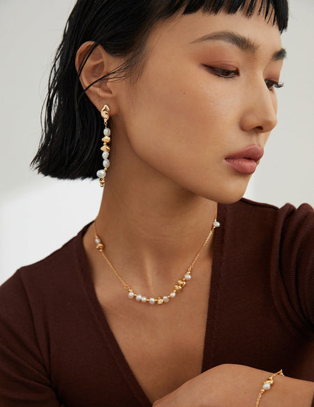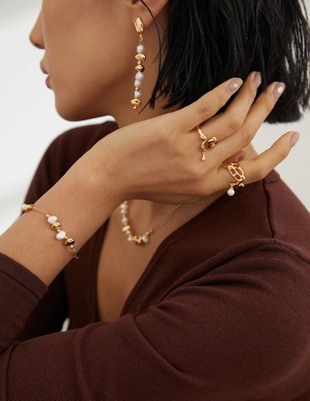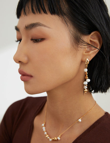 These Sterling Silver Natural Pearl Earrings highlight the organic elegance of baroque pearls, embracing their irregular yet mesmerizing shapes. With minimalist gold-tone detailing, the design lets the pearls shine, creating a sophisticated, effortlessly chic look inspired by French aesthetics.