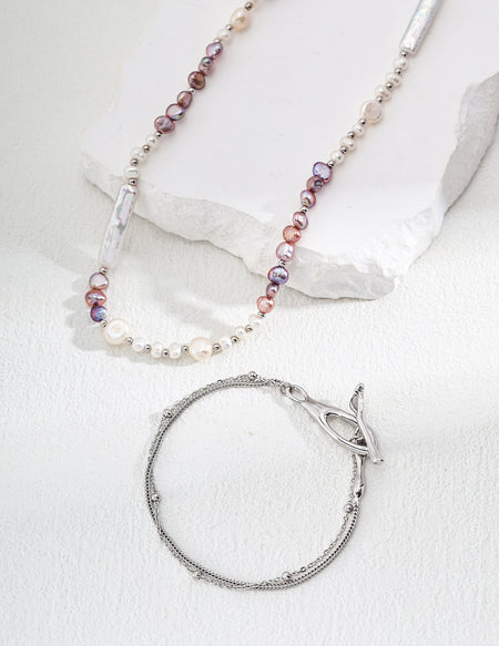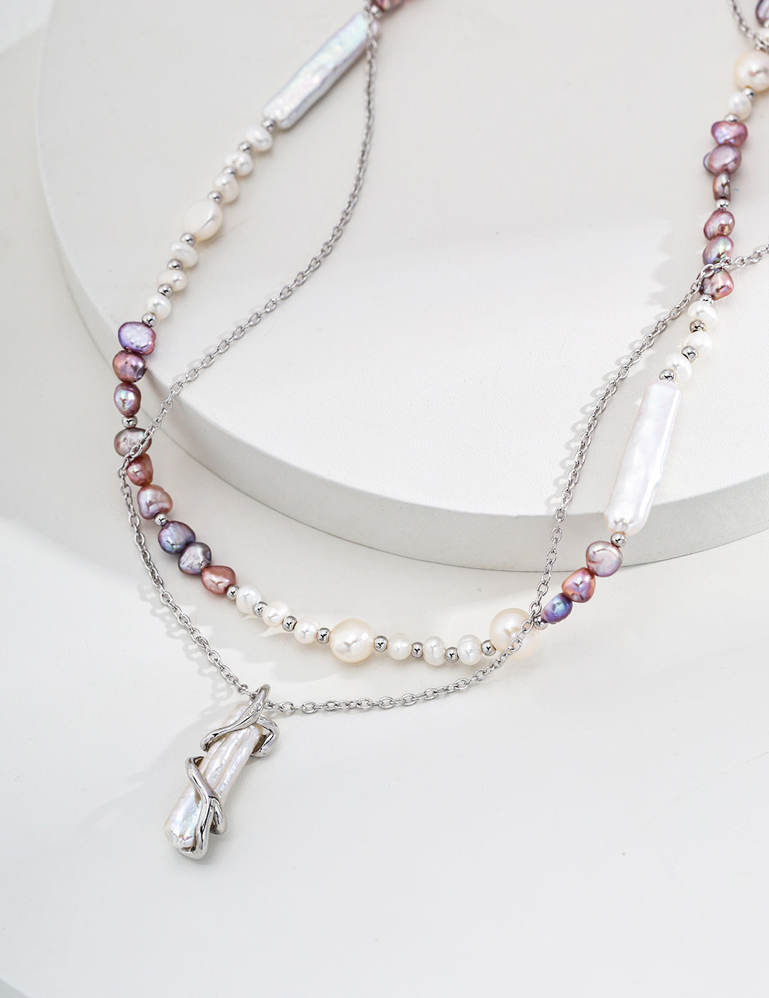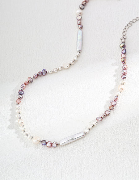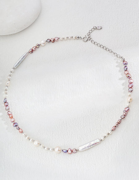 Aurora Glow 925 Sterling Silver Natural Pearl Necklace