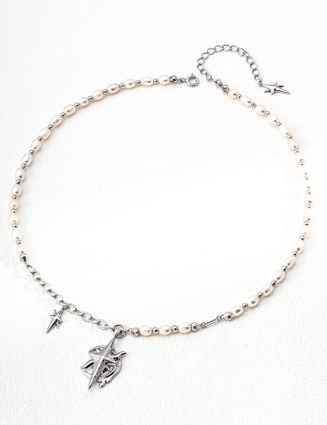 Celestial Prophecy Jewelry Set – 925 Silver Pearl Necklace & Earrings