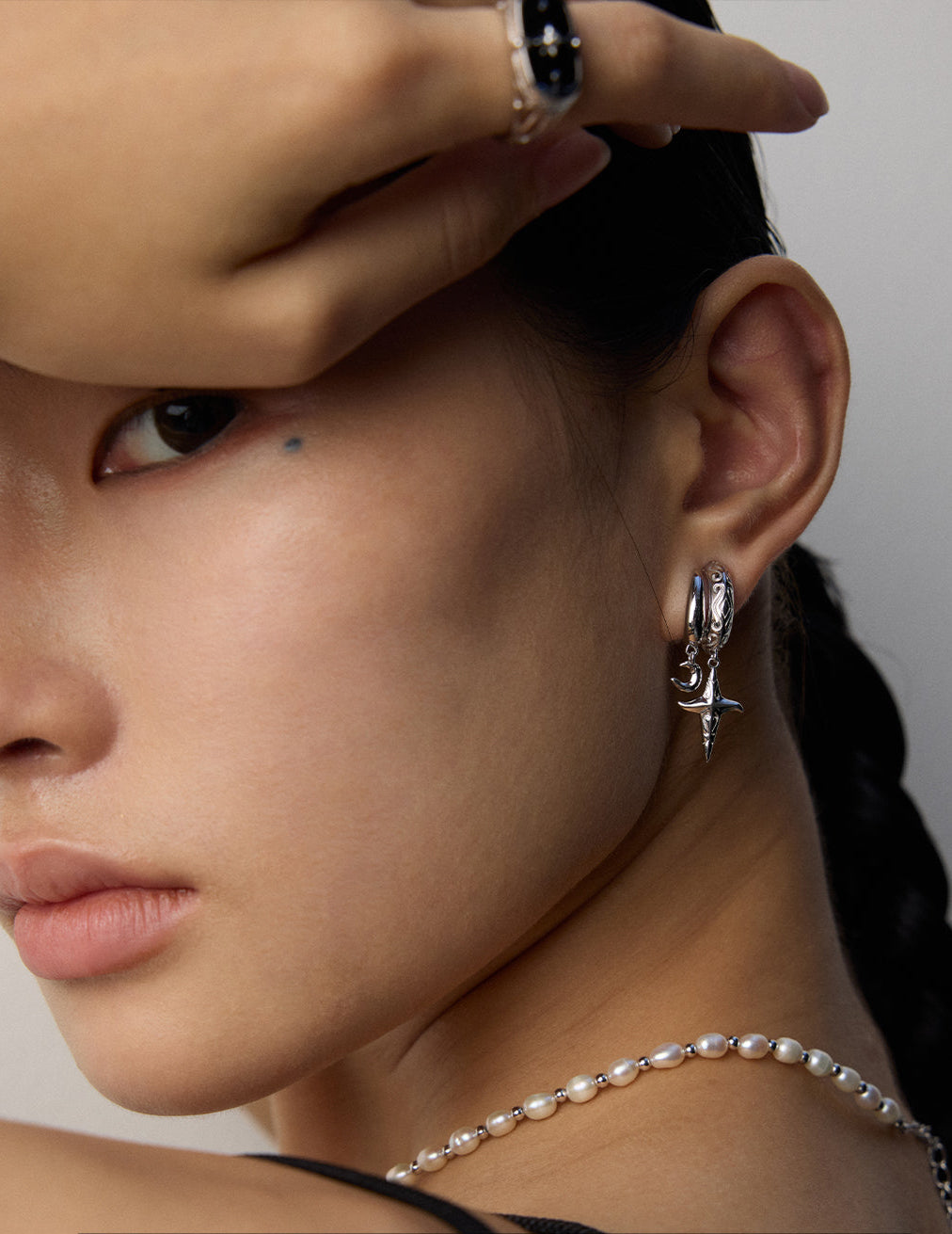 Wear them together as a symbolic statement of personal fate, or style separately for subtle cosmic elegance.