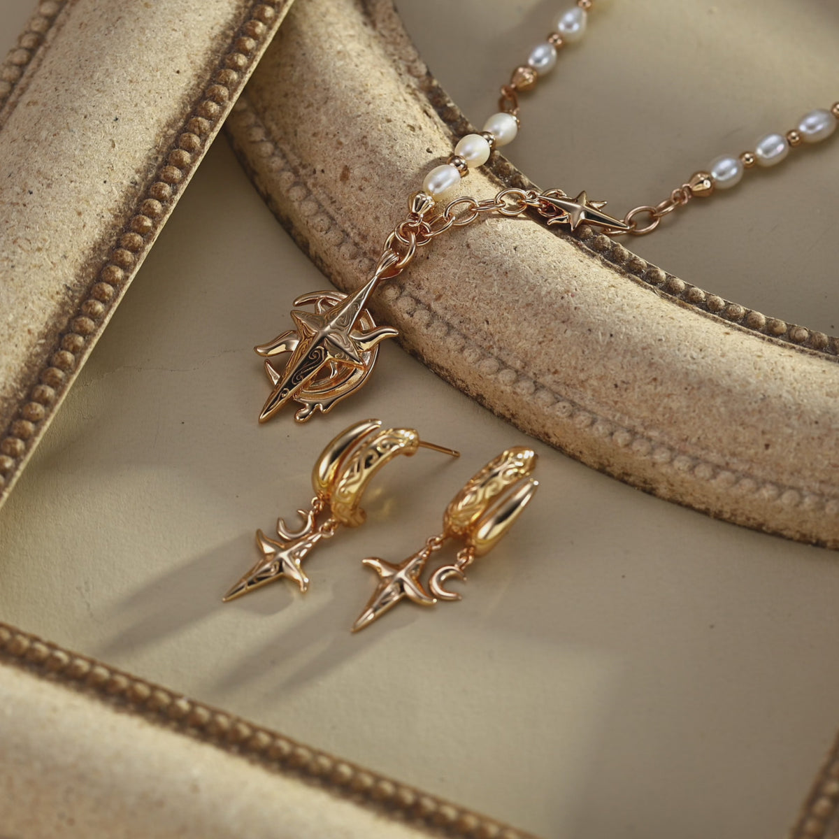 The Celestial Prophecy Set is a two-piece collection inspired by moonlit skies, ancient myths, and celestial alignments.