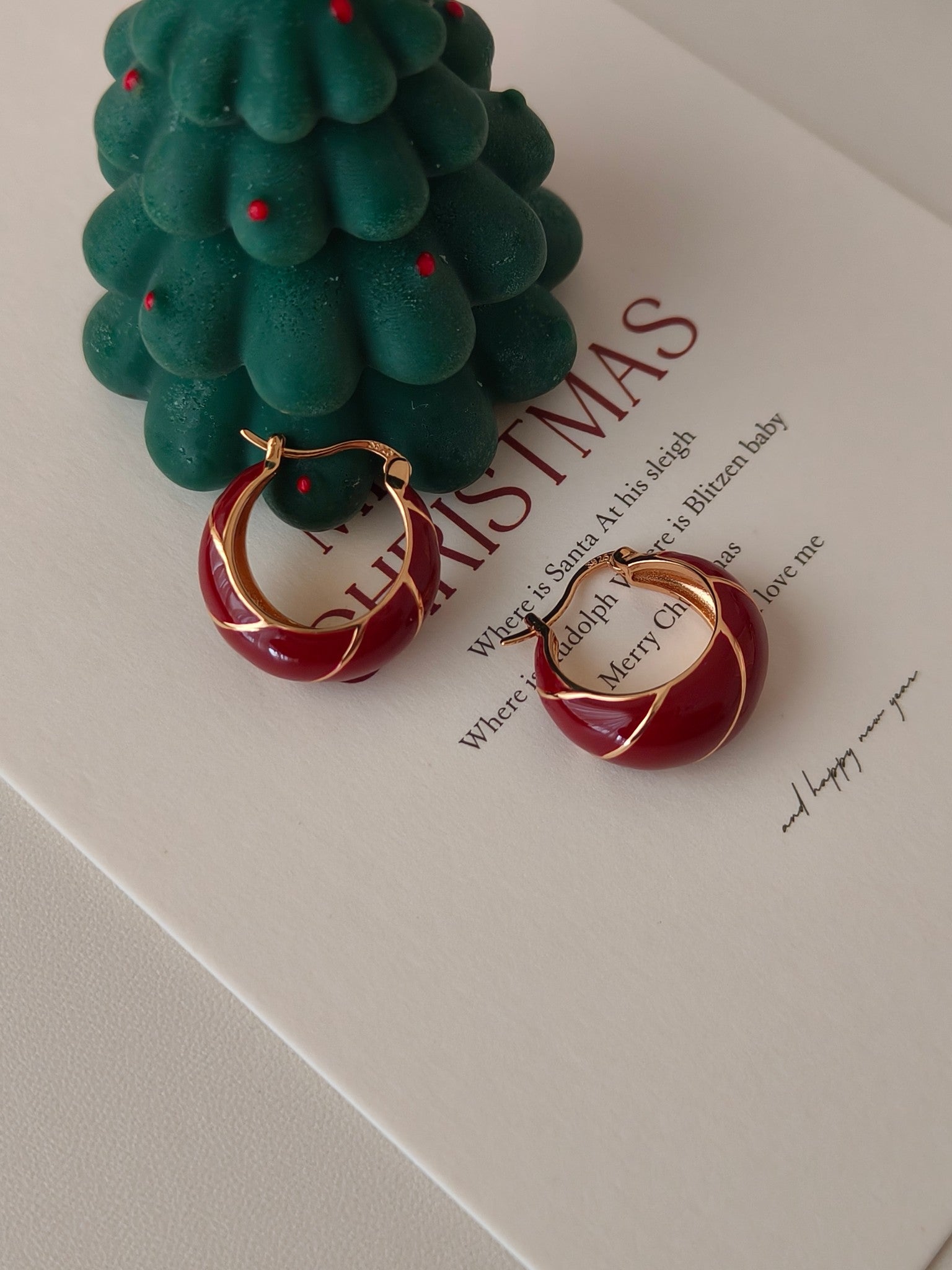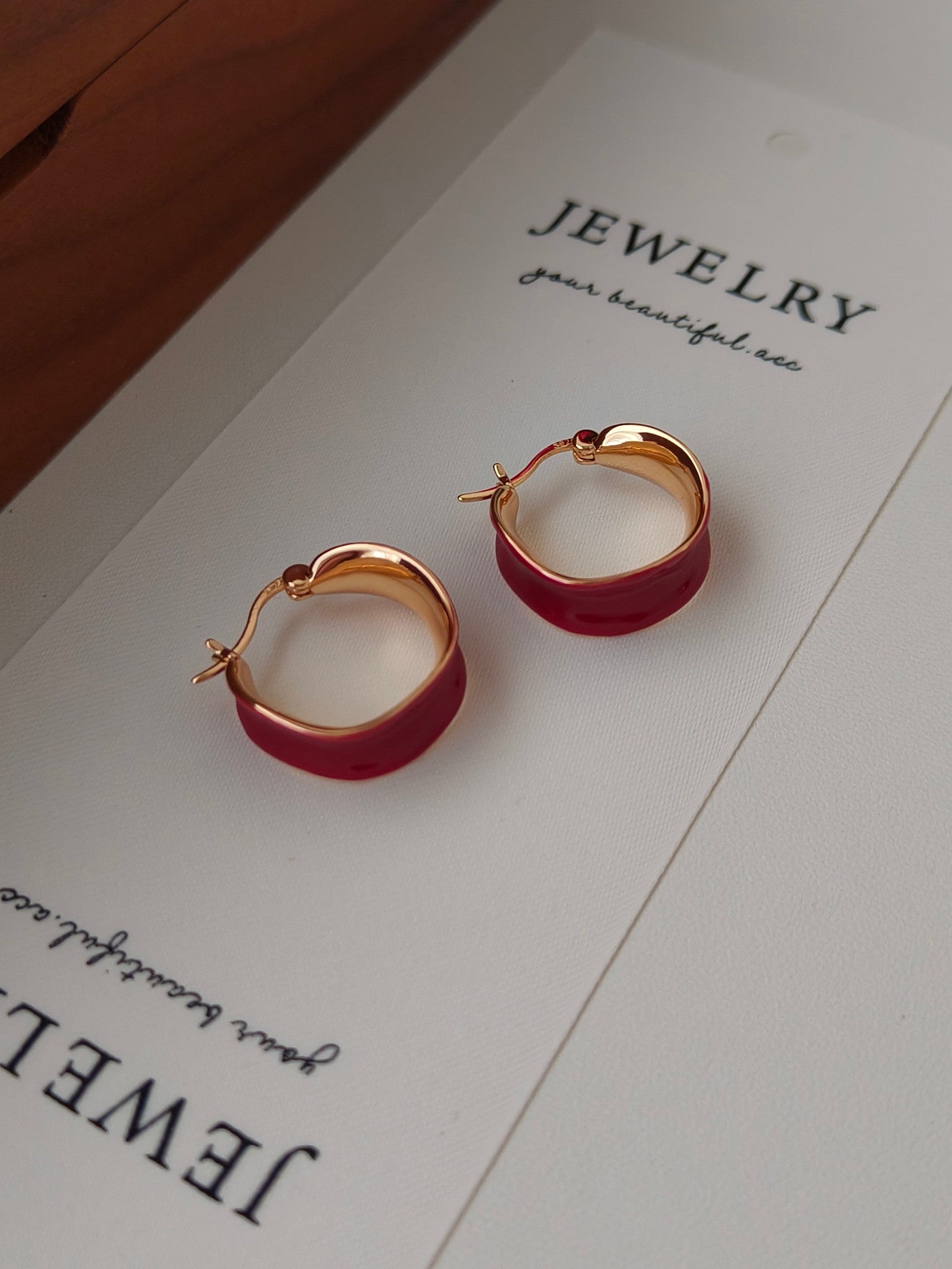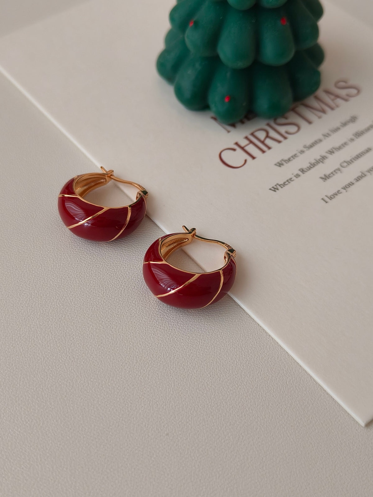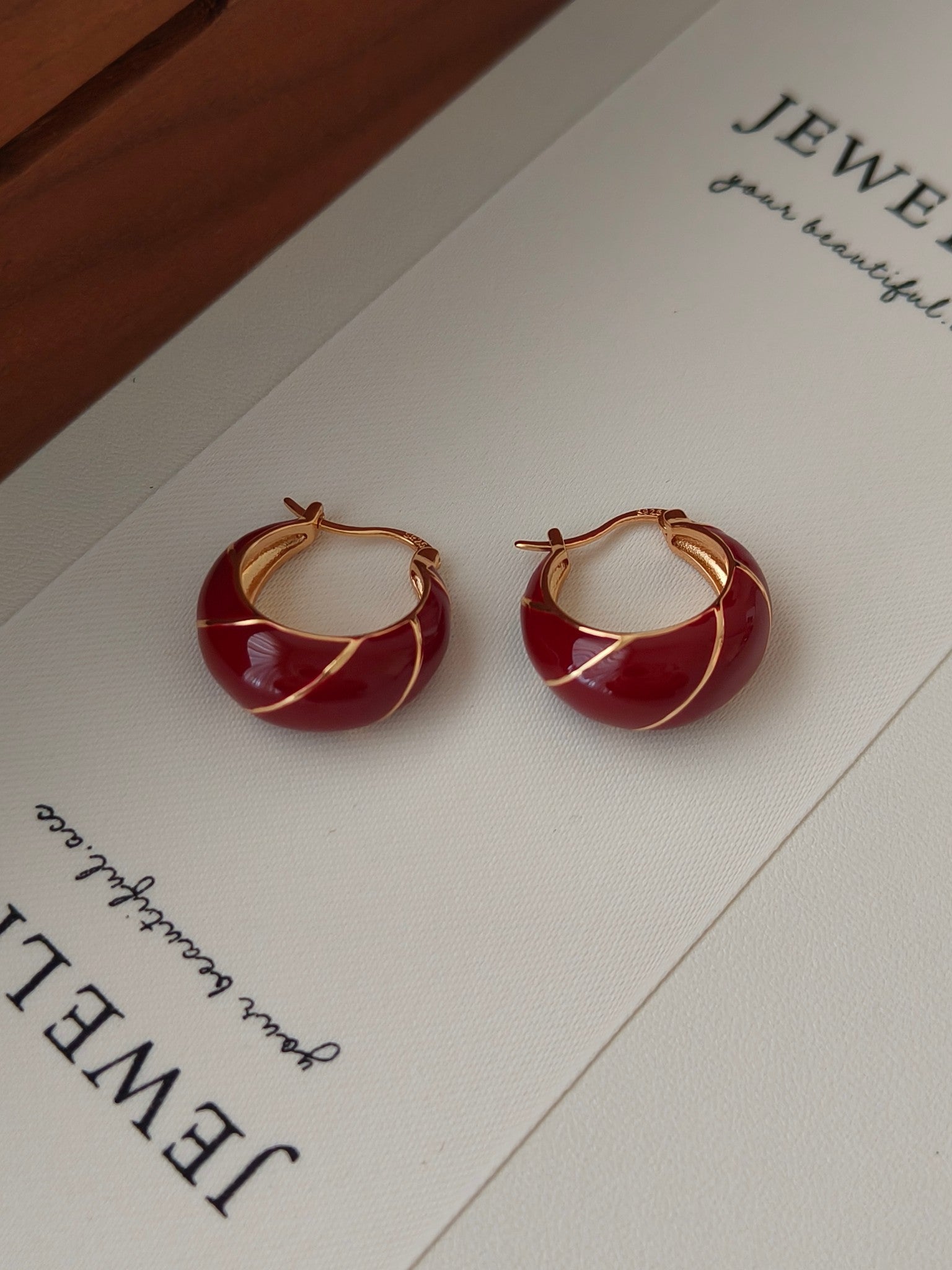 ✨ Add a pop of bold elegance to your style with these stunning True Red Enamel Hoop Earrings! ✨