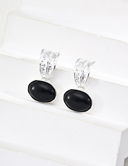 Fierce Elegance: S925 Black Agate & Tiger Eye Earrings