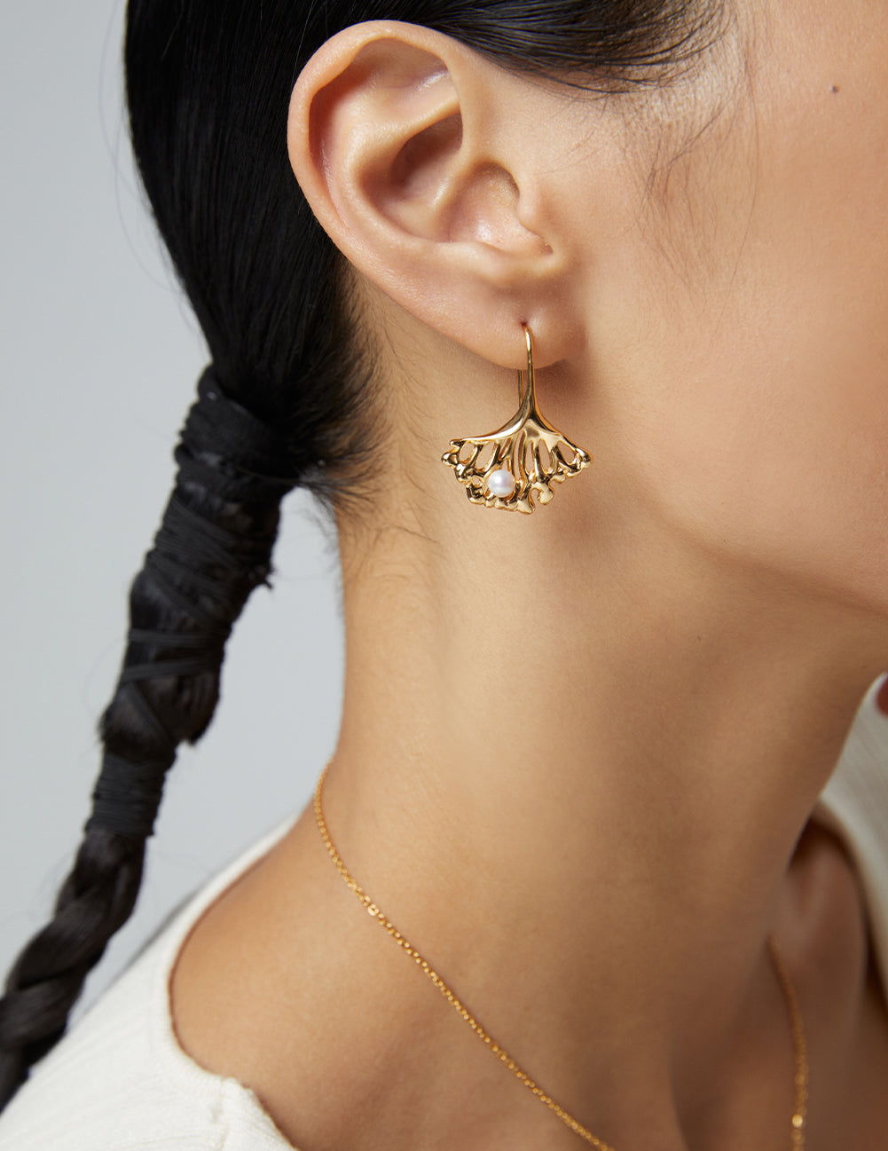 ✔ Matching Ginkgo Leaf Pearl Earrings – Unique, nature-inspired earrings with delicate pearl accents