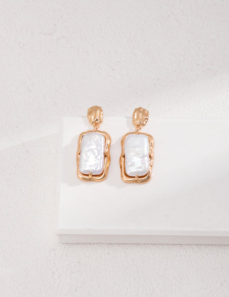 ✔ Rectangular Pearl Earrings – Statement dangle earrings with luminous natural pearls