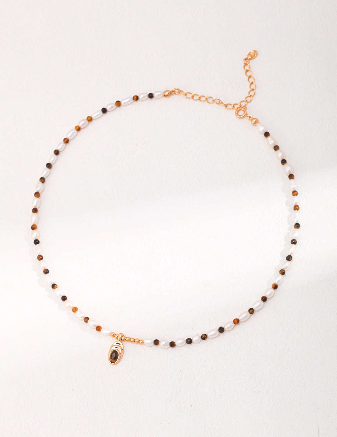 Name: Sierra Charm 925 Sterling Silver Tiger Eye & Pearl Necklace