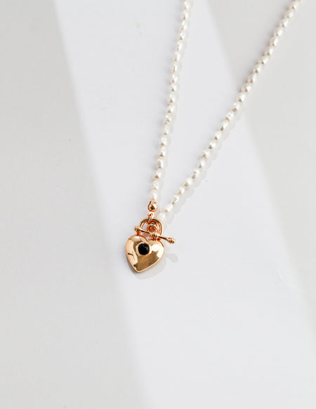 Crafted from S925 sterling silver, natural rice pearls, and a sculpted vintage gold heart pendant, this necklace brings quiet elegance to your neckline. Simple, delicate, and irresistibly romantic.