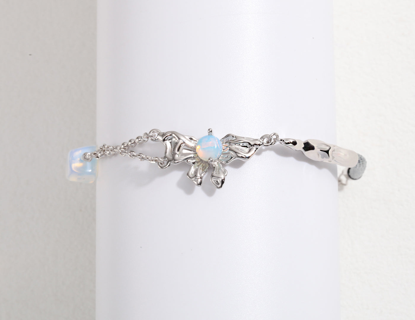 Brighten up your jewellery collection with this dreamy butterfly knot opal bracelet! Inspired by romantic fairycore elements, this piece features a glowing opal framed in a flowing silver knot design for a delicate, ethereal look. Whether you're styling it with a sweet blouse or a silky dress, this bracelet brings out effortless elegance with a hint of magic. Adjustable length for a perfect fit.