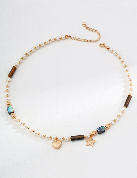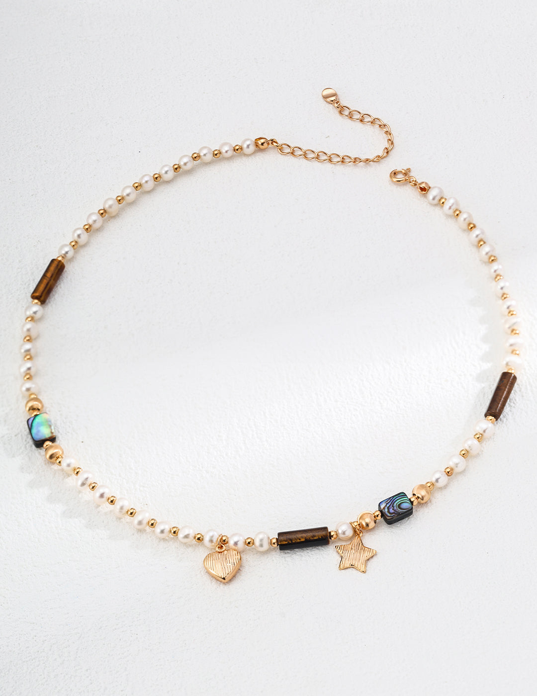 - Material: 925 Sterling Silver, Natural Freshwater Pearl, Tiger Eye Stone, Shell Beads, Gold-Tone Plating