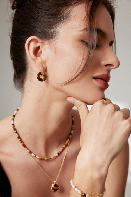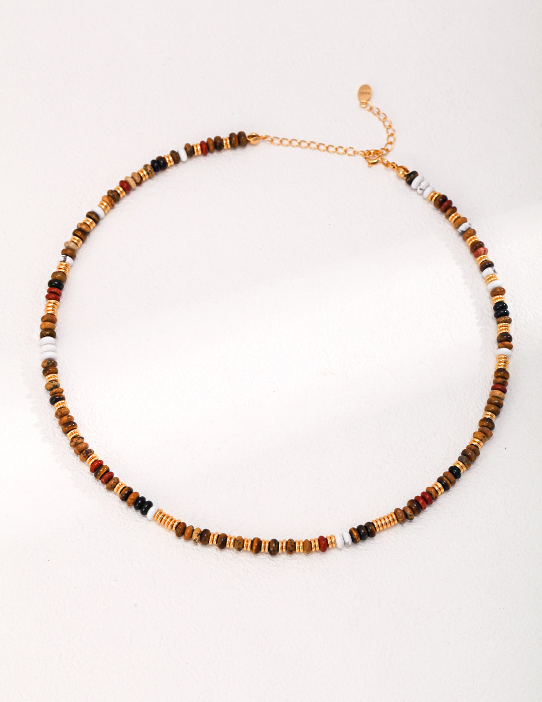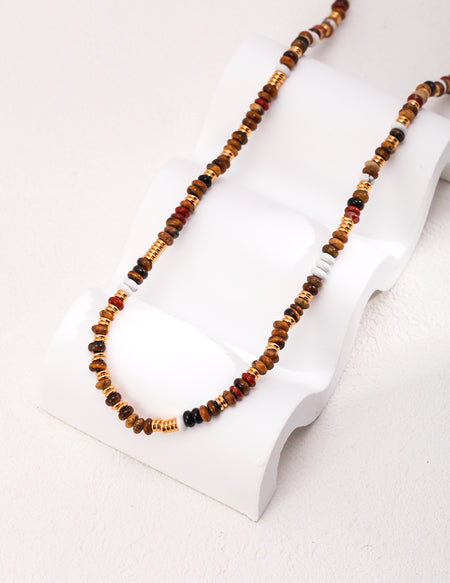 Elevate your style with this Tiger Eye & Multi-Stone Beaded Necklace, a perfect blend of earthy elegance and bohemian charm. Featuring a mesmerizing Tiger Eye gemstone pendant, surrounded by a carefully curated mix of warm-toned beads, this piece effortlessly complements any look.