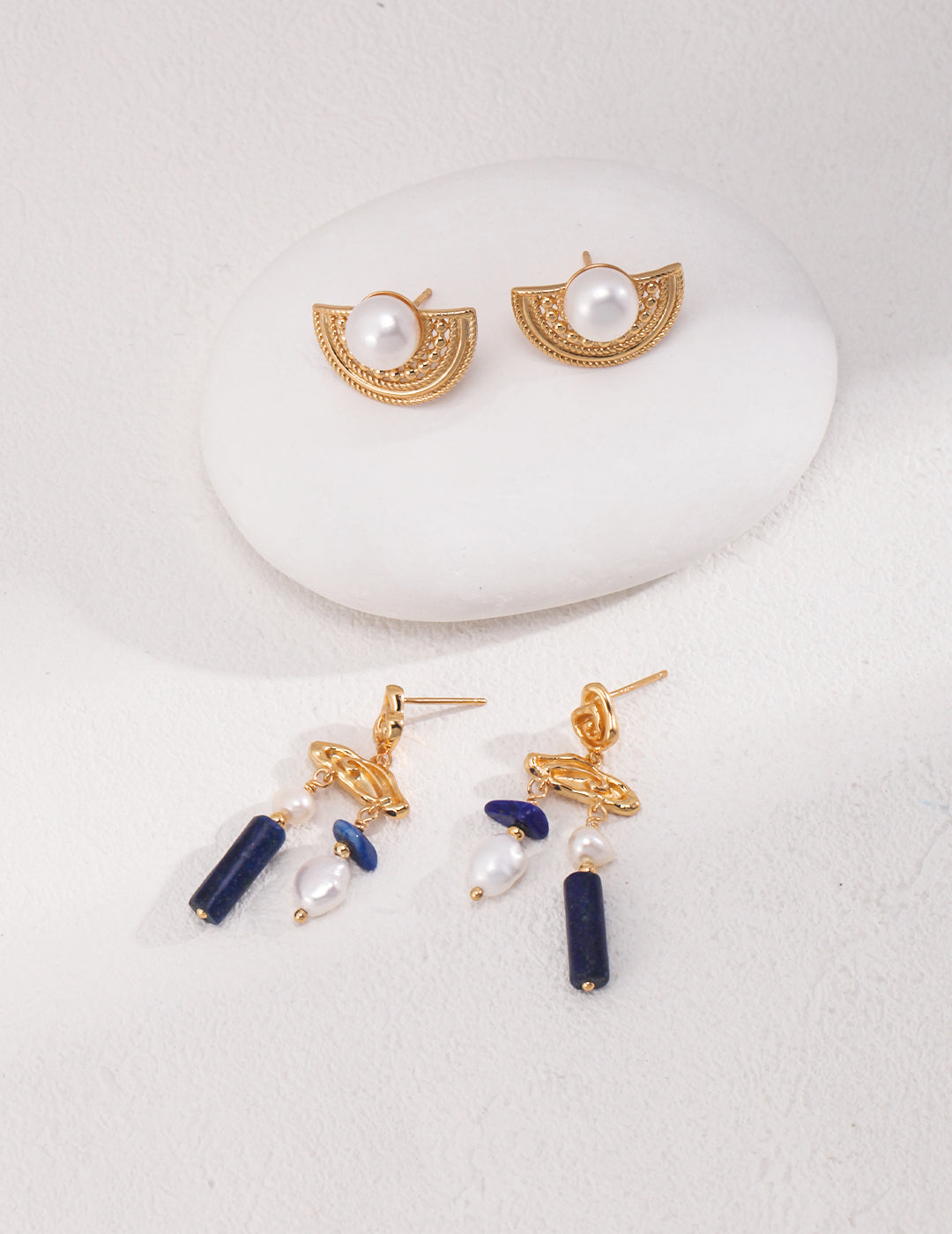 Timeless Elegance Abstract Lapis Lazuli & Pearl Earrings – S925 Sterling Silver