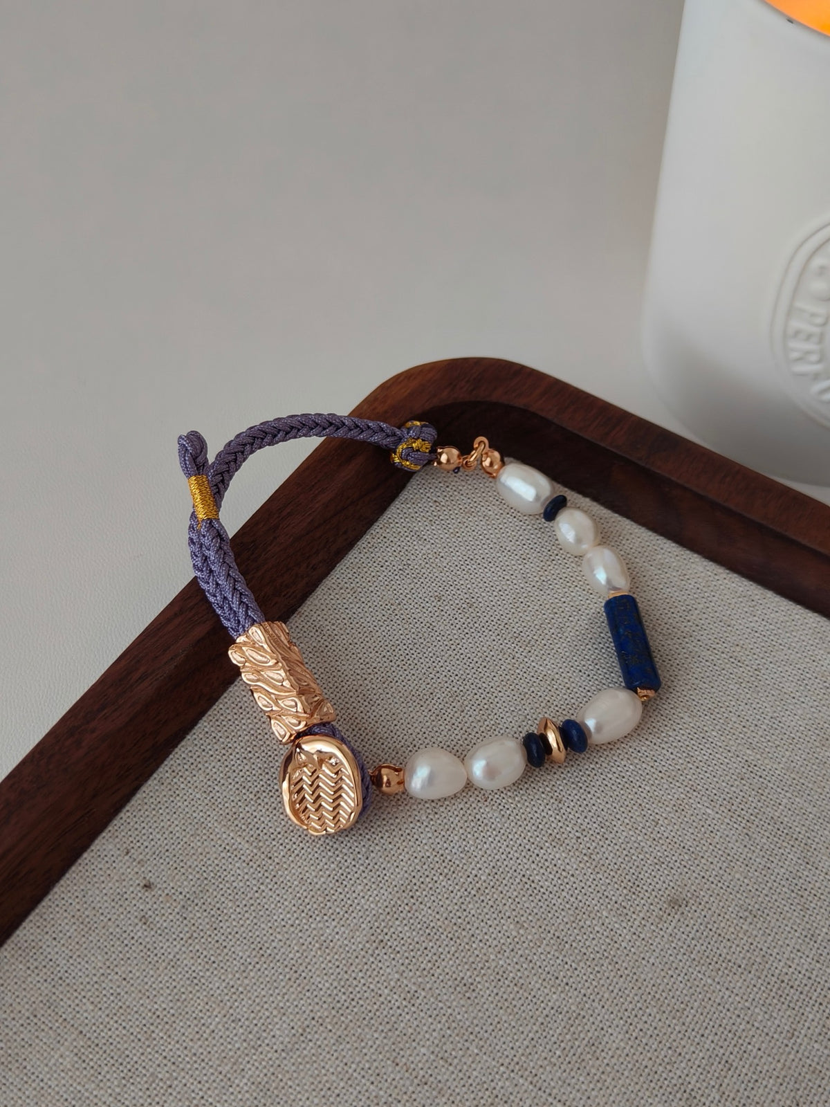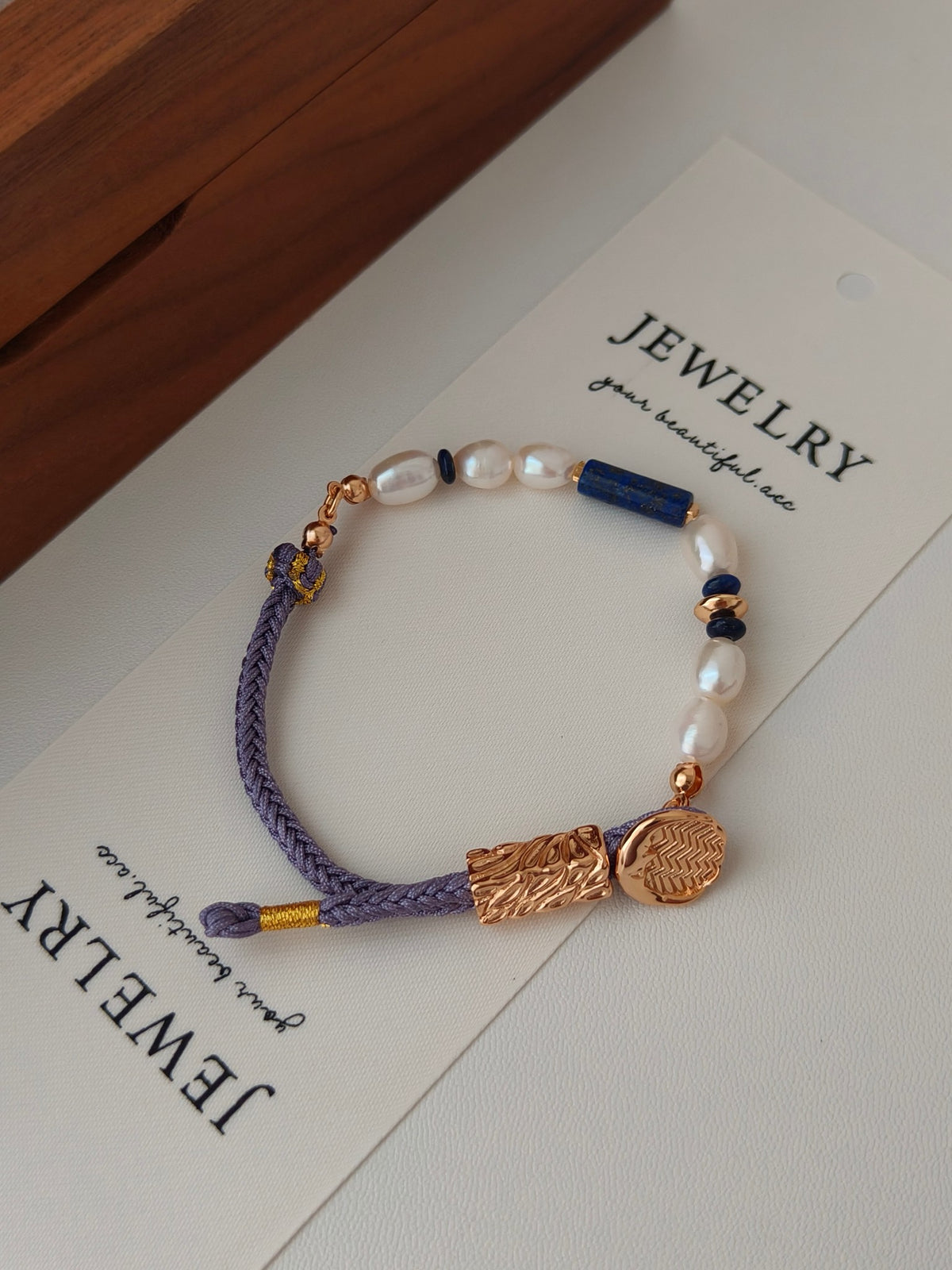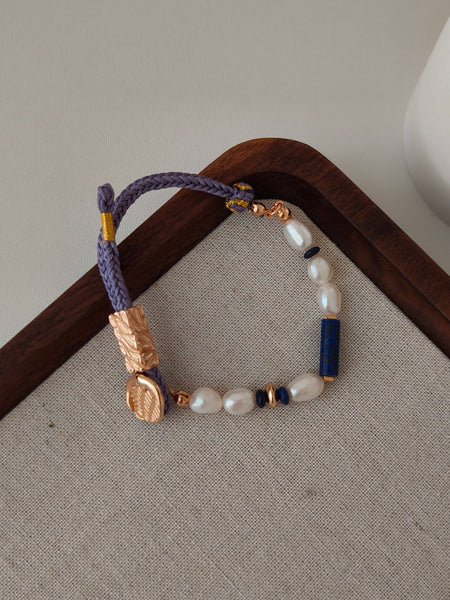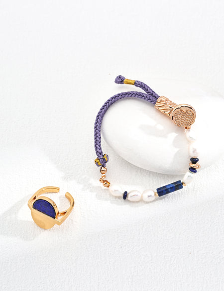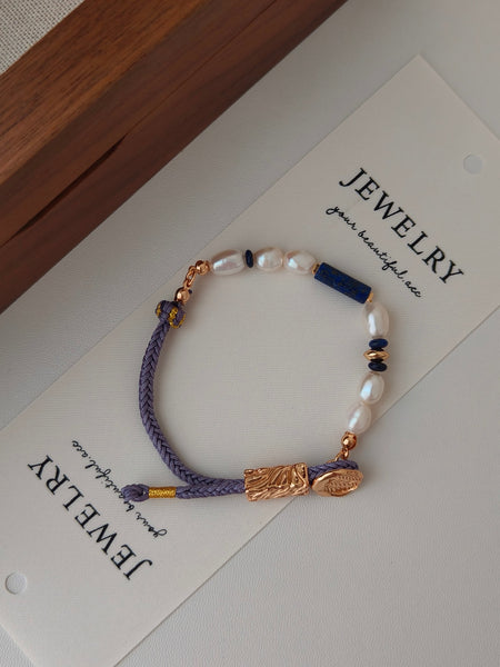 A perfect blend of natural beauty and vintage charm, this S925 Silver Lapis Lazuli & Pearl Bracelet is designed to bring elegance to your everyday style. Featuring lustrous freshwater pearls and deep blue lapis lazuli stones, this piece reflects both classic sophistication and modern artistry. The adjustable antique gold-plated silver chain ensures a comfortable fit, making it ideal for any wrist size.