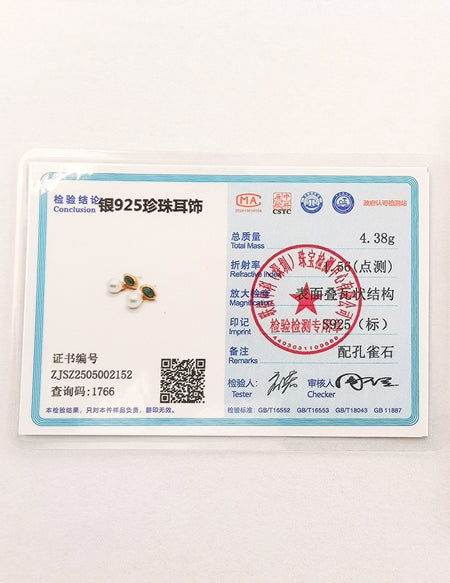 Style: Stud earrings with natural malachite inlay and drop-shaped pearl
