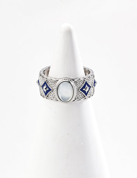 Vintage Blue Enamel Lapis Lazuli/Mother of Pearl Adjustable Ring